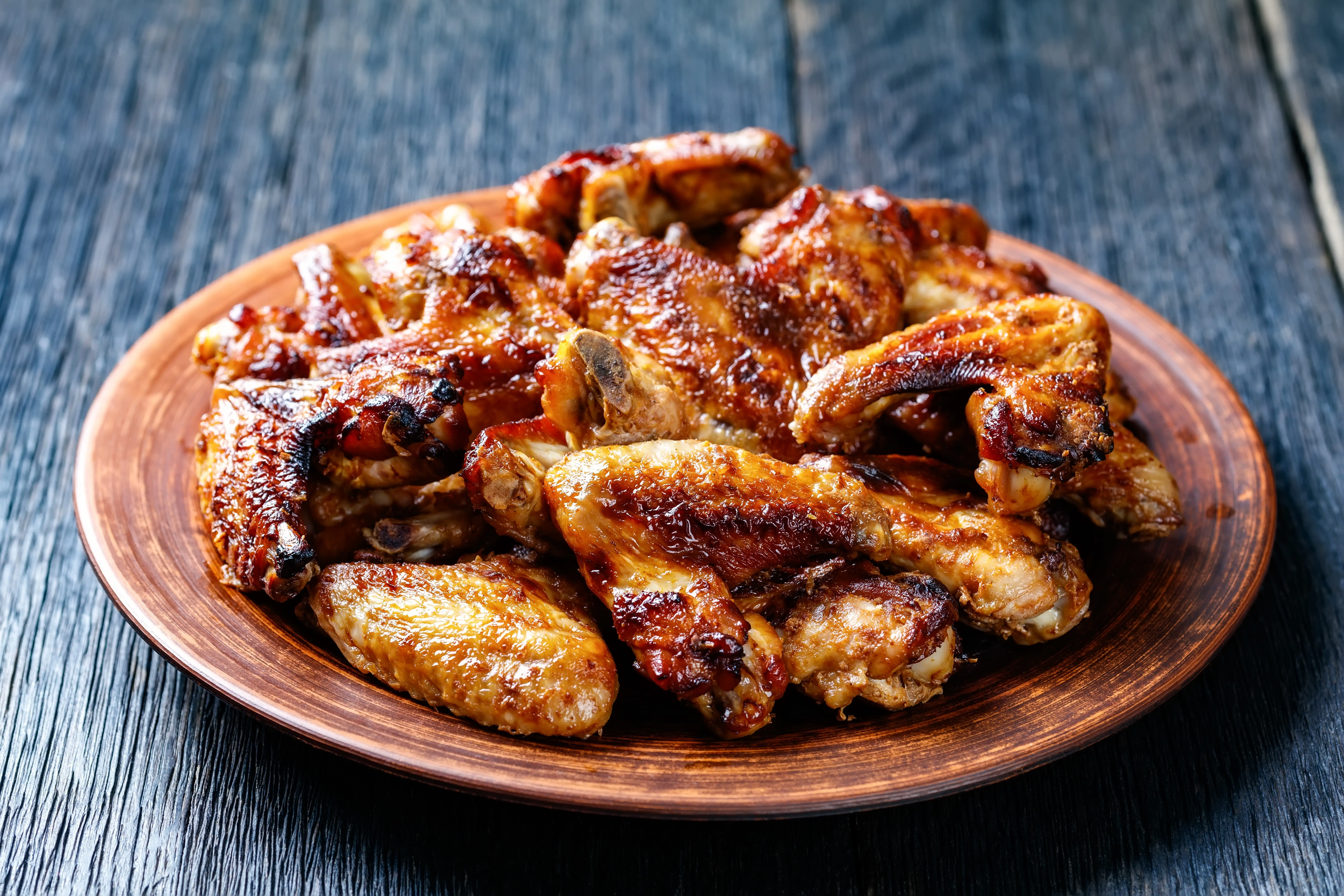 Подается с маринованным луком, шашлычным соусом и лавашом.